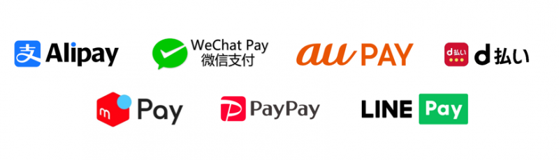 「Alipay(支付宝)」「WeChat Pay(微信支付)」「au PAY」「d払い」「メルペイ」「PayPay」「LINE Pay」