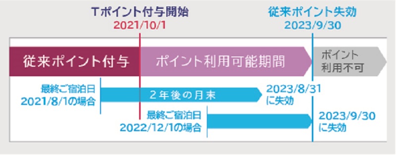 2021年9月30日までに貯められた従来ポイントは有効期限(最終ご宿泊日から2年後の月末)までお使いいただけます。