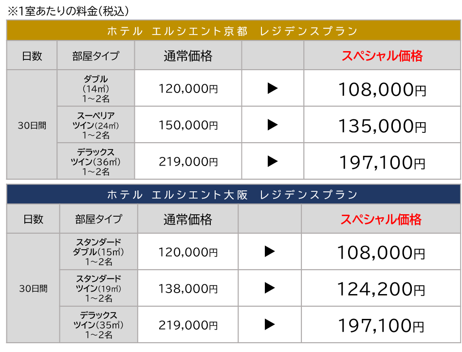 30日間ご滞在いただけるレジデンスプランです。
