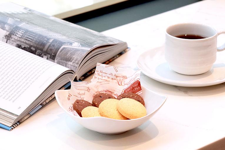 enjoy a quiet and relaxing afternoon with tea, coffee, seasonal sweets, and light fare.