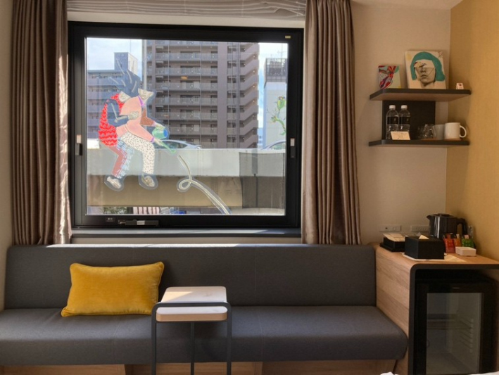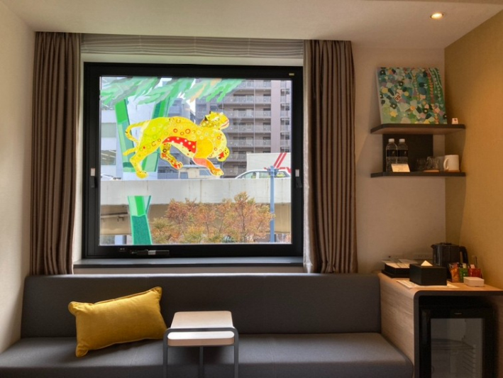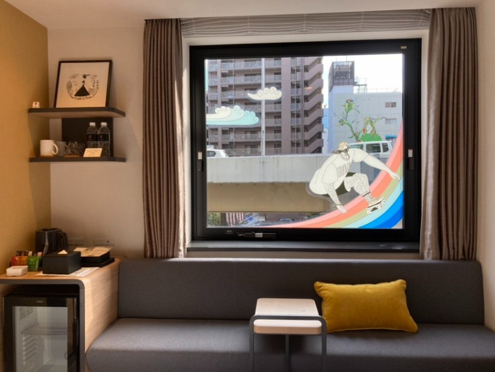 ホテルエルシエント大阪では「星谷モモ」「MAKO」「kaho hosokawa」の3名の作品のシールアートを各部屋の窓に貼り、アーティストビューとして街の眺めを楽しんでいただくスタンダードツイン3室を、期間限定で販売いたします。