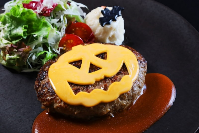 お子様から大人まで幅広い世代に人気のハンバーグをハロウィン仕様に!