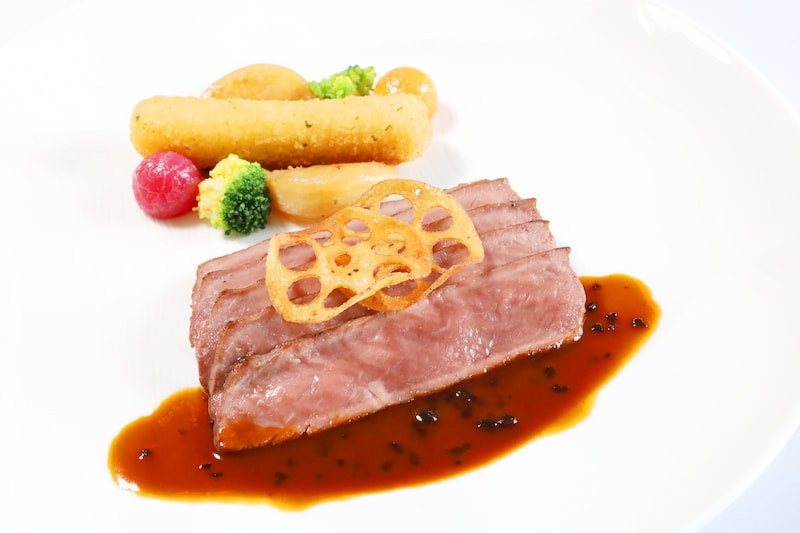 ・仔羊鞍下肉の真空調理 トリュフソース 季節の温野菜を添えて