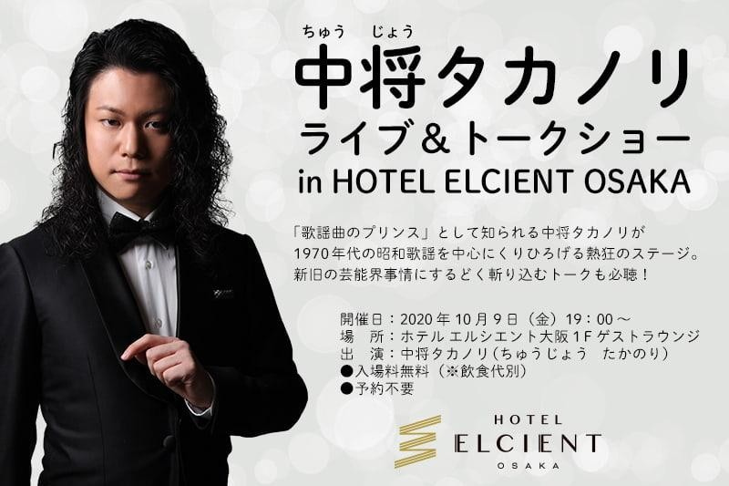 【中将 タカノリ ライブ&トークショー】開催 in ホテル エルシエント大阪|10月9日(金)19:00~