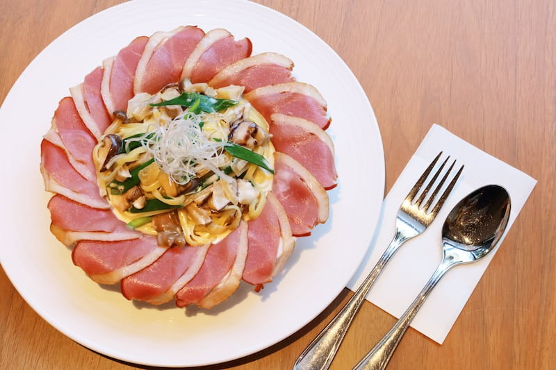 クリーミーながらもあっさりとした生パスタは、塩味のある鴨ロースハムと相性バツグン!