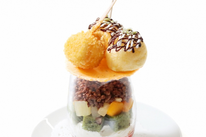 たこ焼きと串カツをスイーツとして再現したユニークな新感覚スイーツをぜひお試しください♪