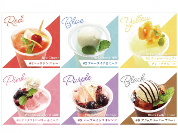 6色のカラフルなモクテルからお選びいただけます。推し色や好きな色をお選びください♪