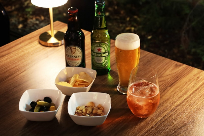 落ち着いた癒しの空間で楽しむ日替わりのオードブルとビールやワイン、カクテルなど