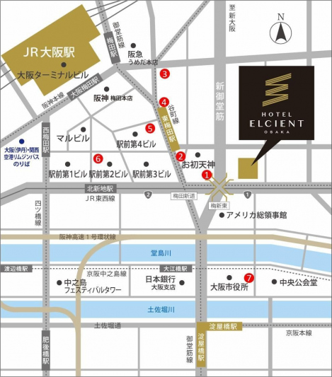 ホテル エルシエント大阪から京セラドーム行きバス停までのアクセス方法